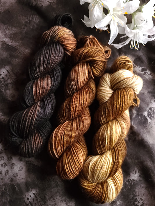 AS A GENERAL RULE, anything dyed on Nordic NSW will be lighter and more matte than the photos portray. Anything dyed on Yeti Yak will be darker/moodier (due to the darker bare base).