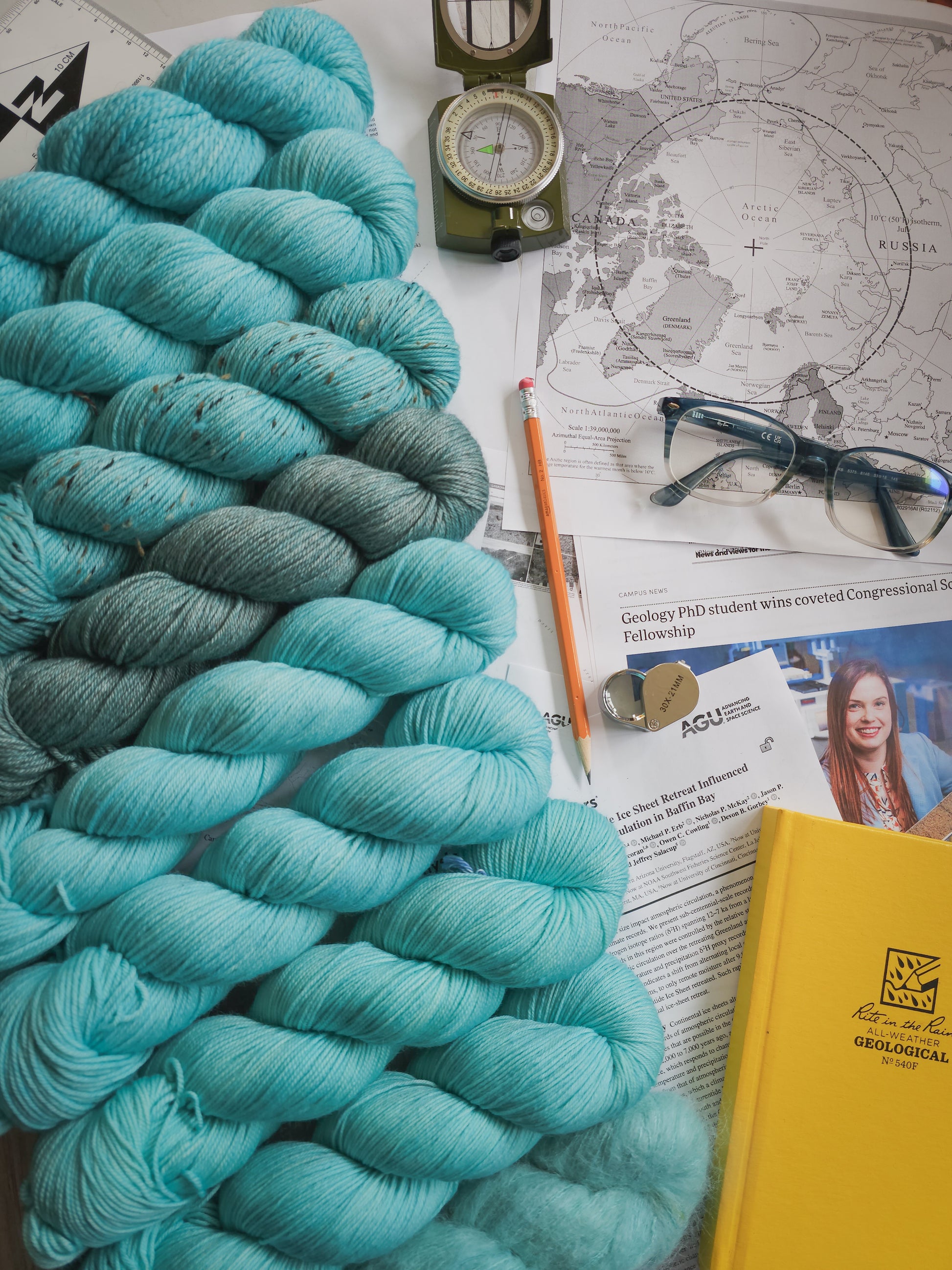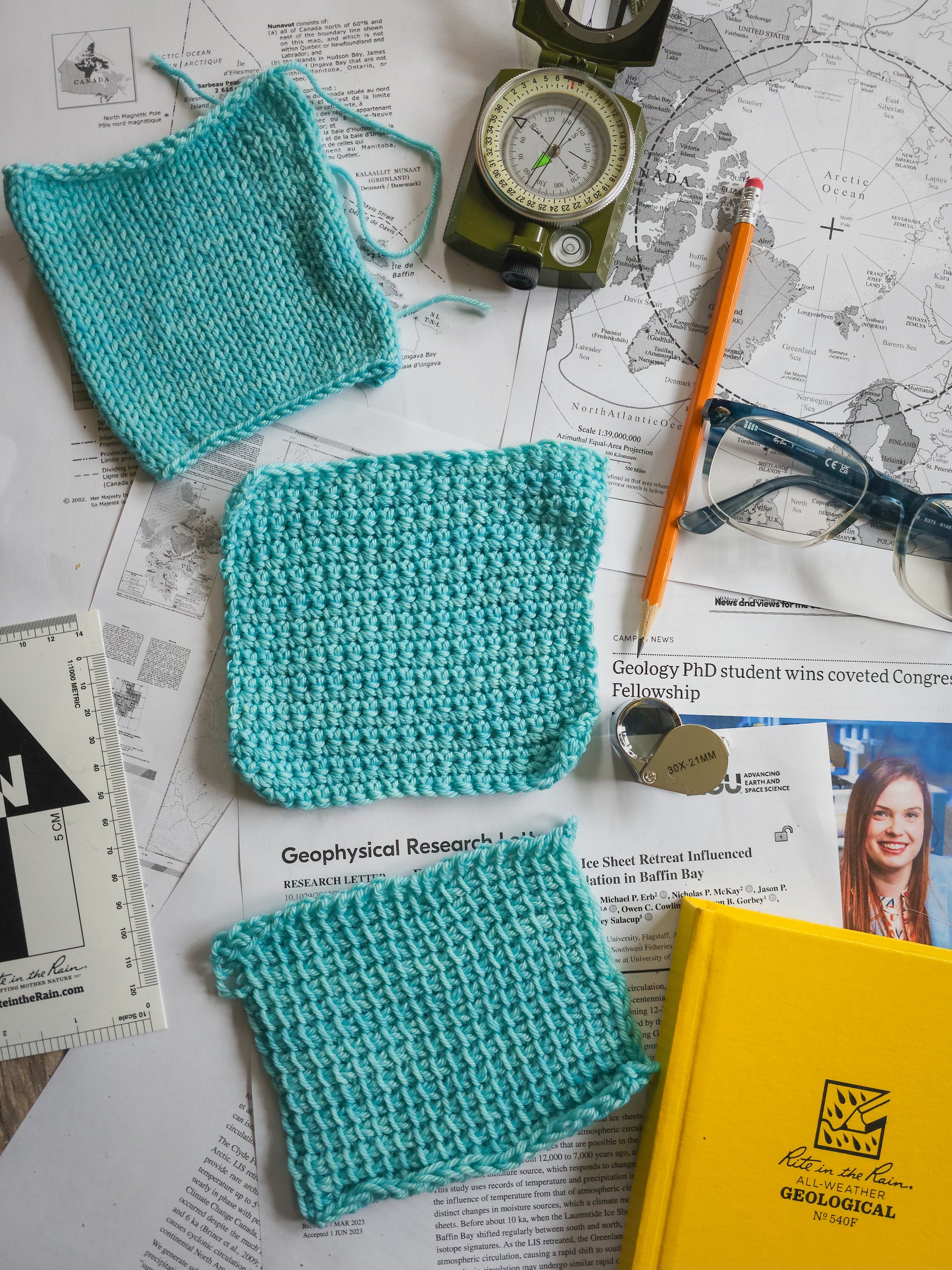 This collection was created in collaboration with the amazing Devon @stitches.and.science - it's her beautiful face you see in the flatlay! All of the inspiration photos are from her and her colleague, from their time in Greenland and on Baffin Island during their studies. She has a Ph.D. in geological studies and is currently working in climate policy.