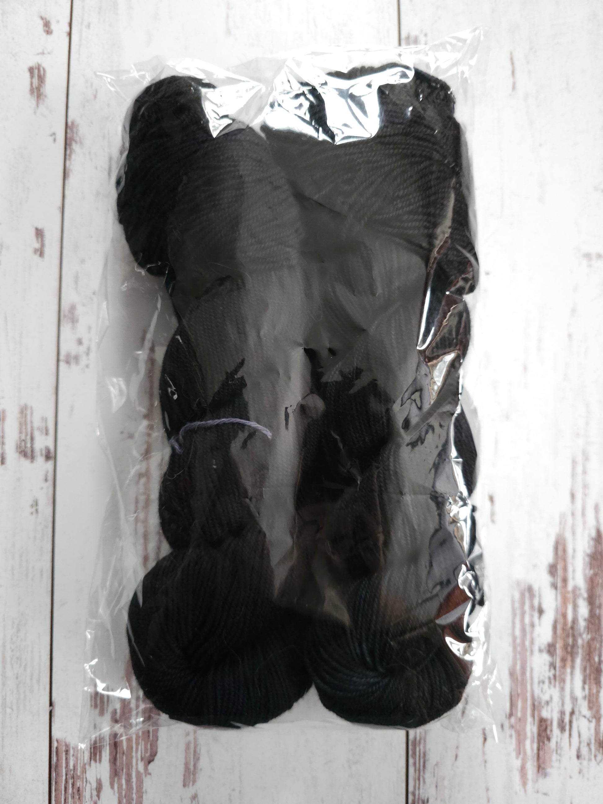 Two skeins of a blue-black dark tonal on Snowdrift Sport.