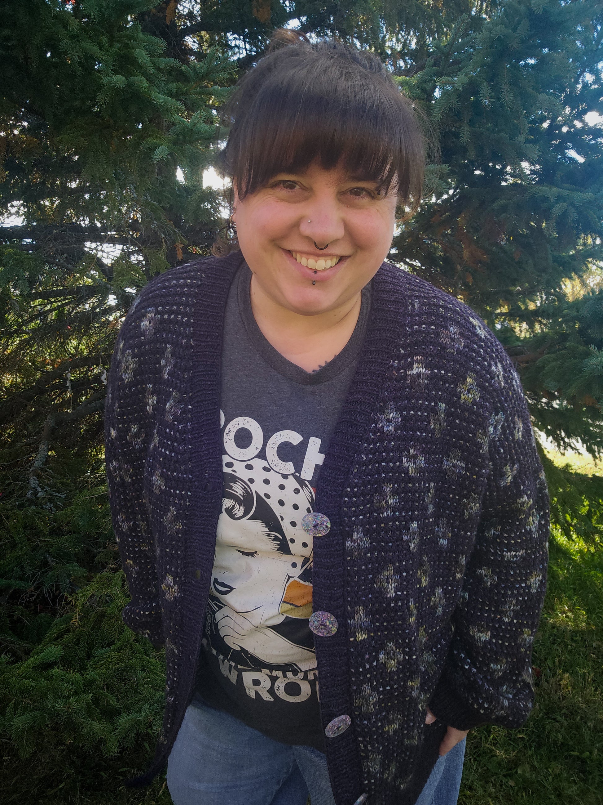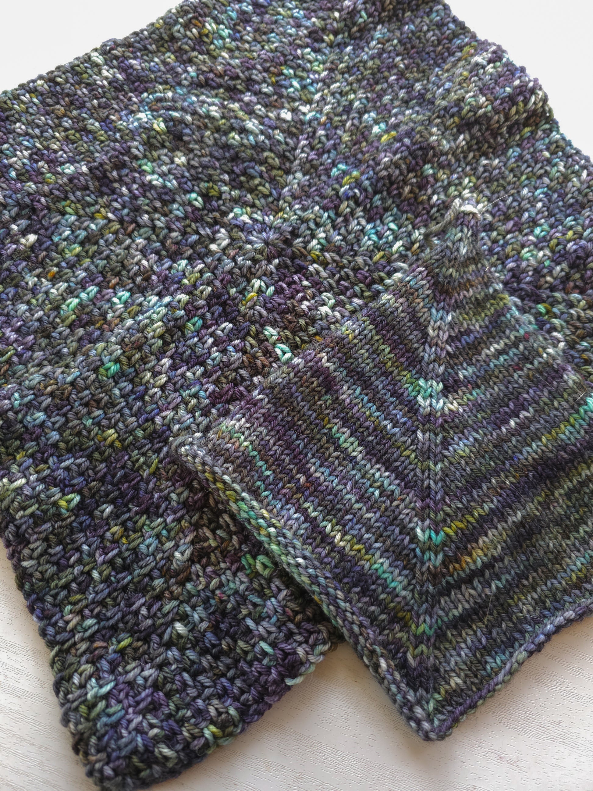 A moody blend of purples and greens, with hints of glacier blue, tobacco brown, blue-grey, and black.