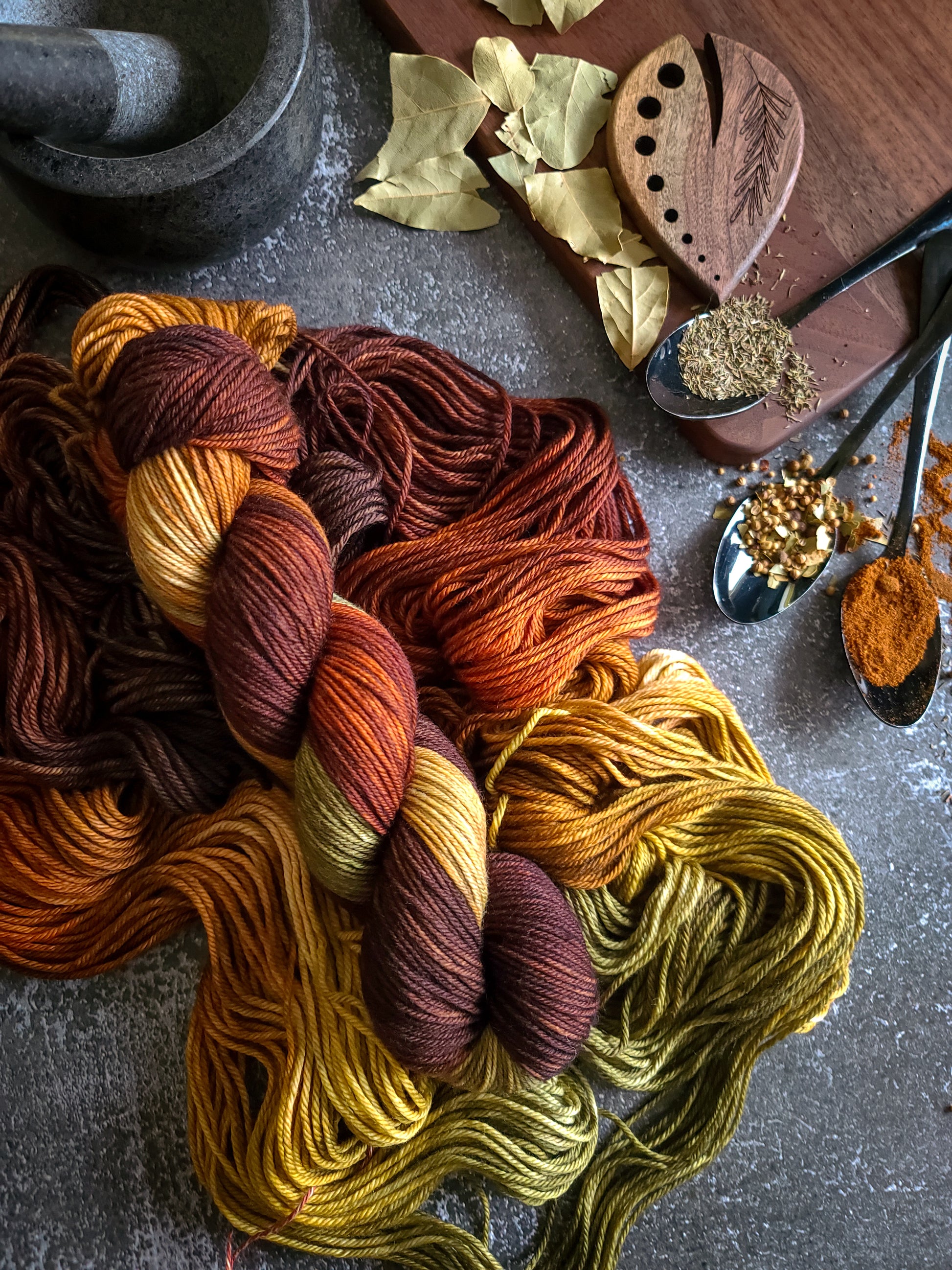 The inspiration photo for this colourway is a selection of spoons full of spices.