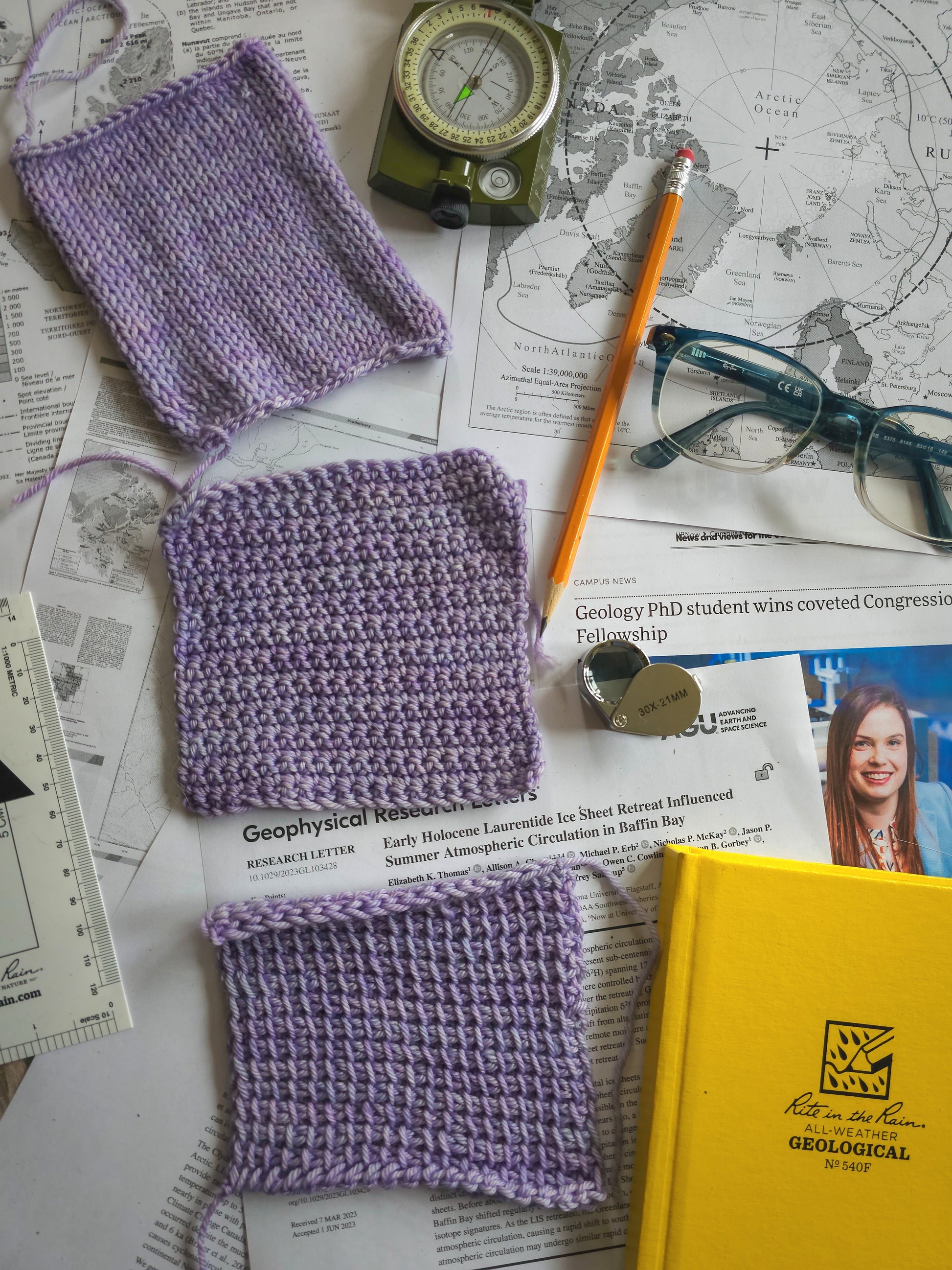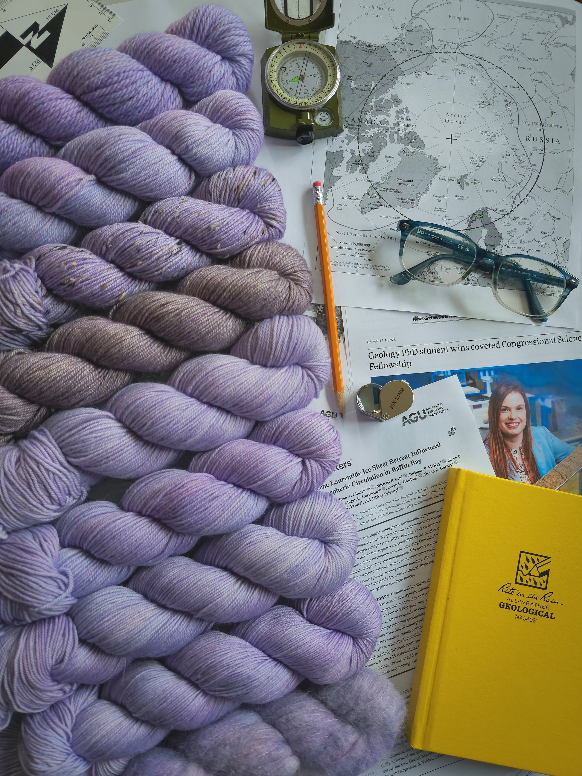 This collection was created in collaboration with the amazing Devon @stitches.and.science - it's her beautiful face you see in the flatlay! All of the inspiration photos are from her and her colleague, from their time in Greenland and on Baffin Island during their studies. She has a Ph.D. in geological studies and is currently working in climate policy.