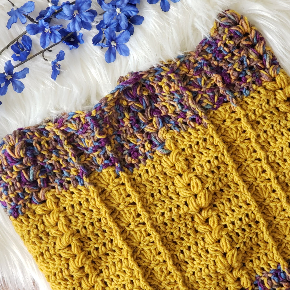 This Pebbles and Shells Cowl is absolutely FULL of texture - puffs and post stitches make this piece a super squishy accessory. It is warm, cozy and PERFECT for the upcoming seasons!