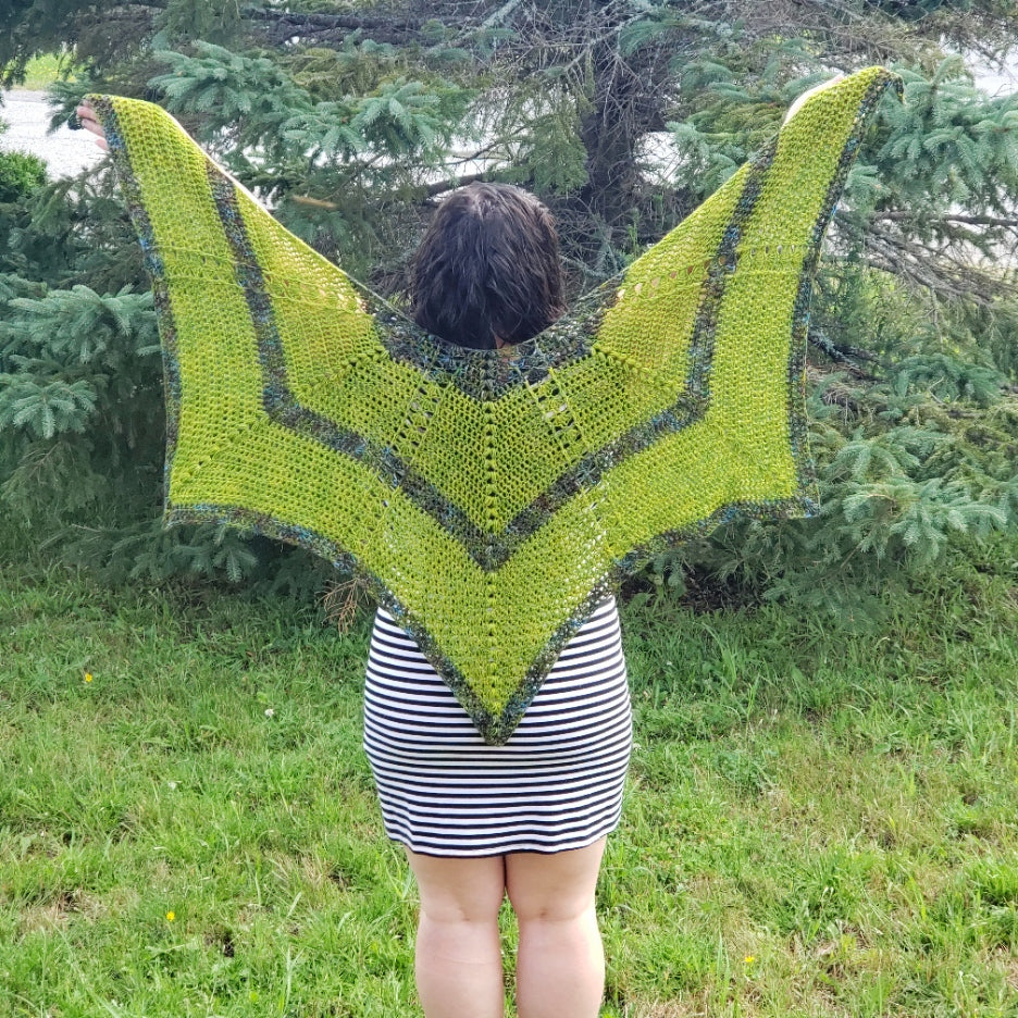 This pattern was designed in collaboration with Sam at Beachy Breeze Fibers. The colours I used for my shawl in particular are Sea Grass and Sea Brine.