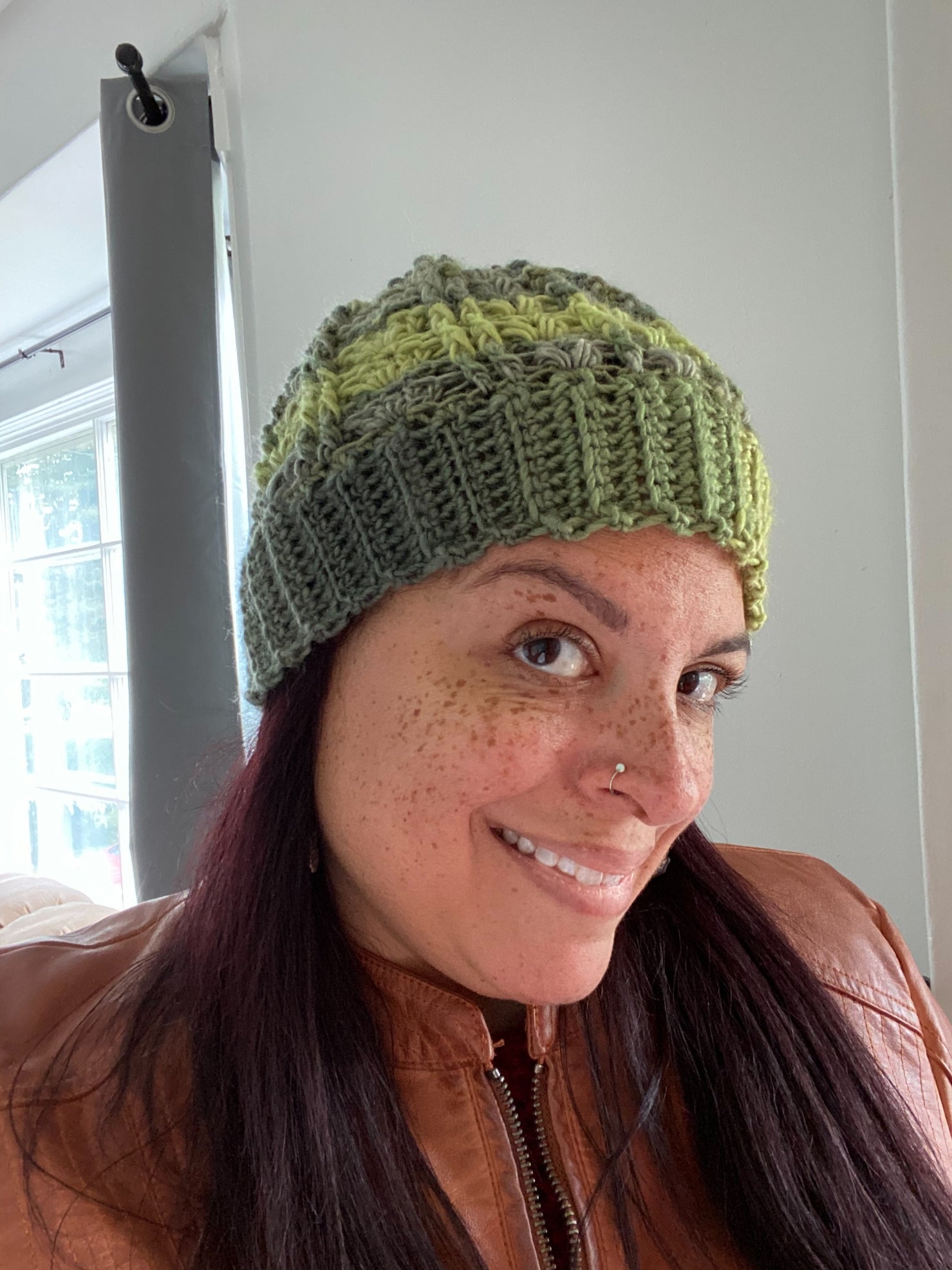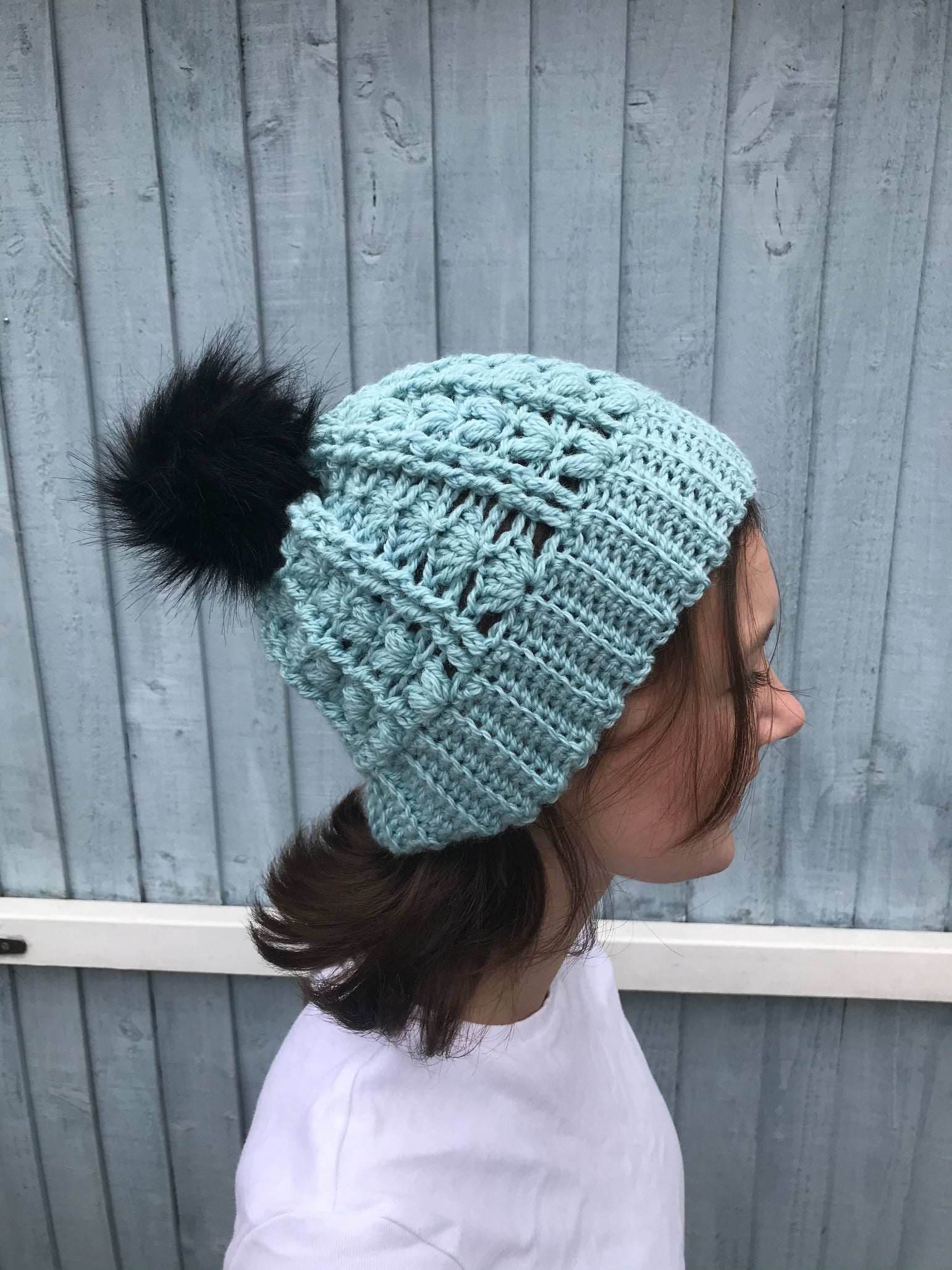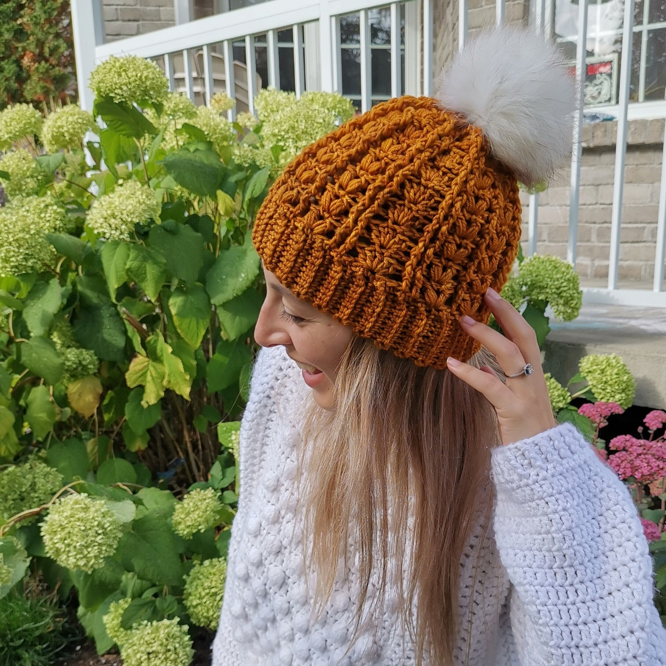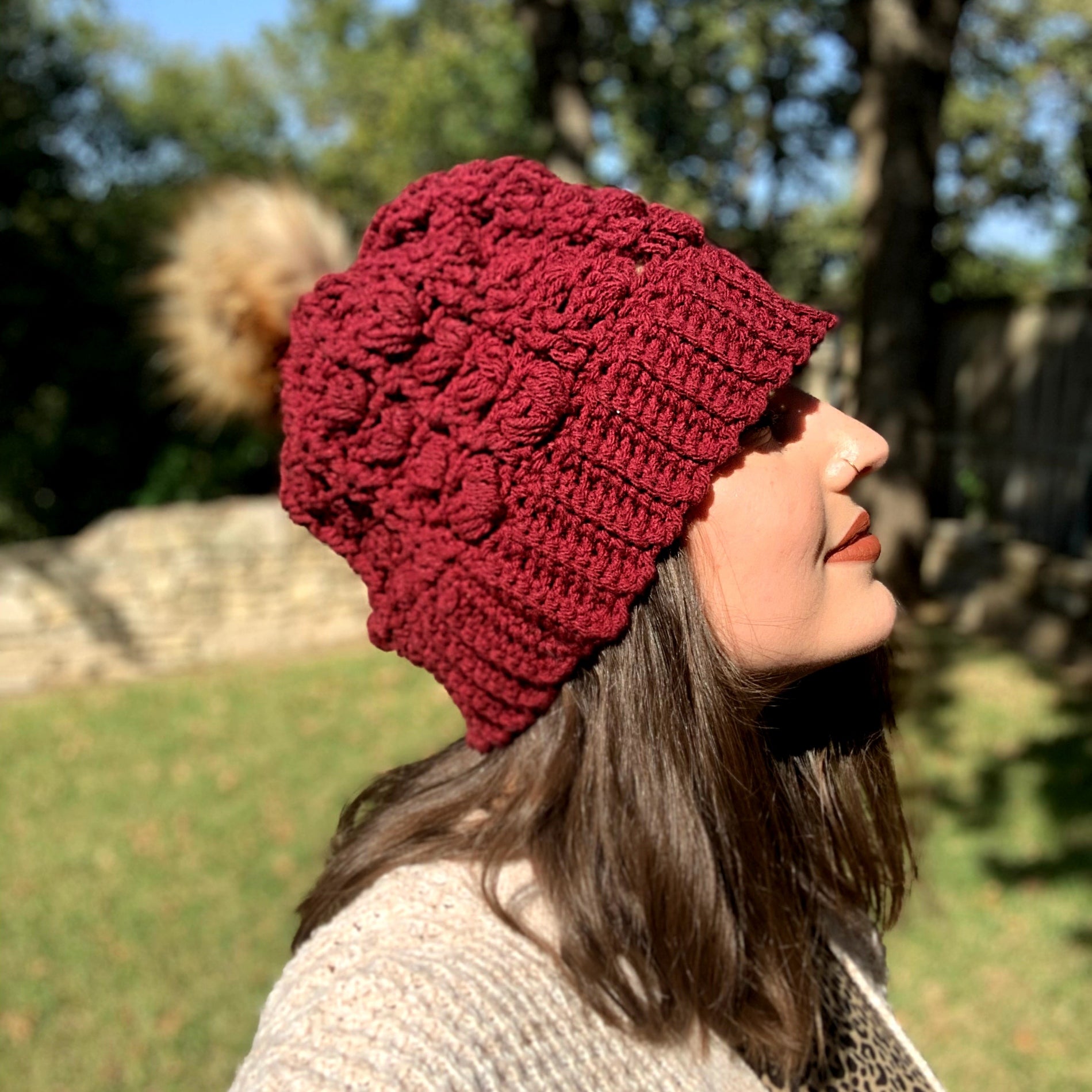 TEXTURE!!!! A fabulous combination of post stitches, puff stitches and shells combined to create a beanie that “hugs” your head!