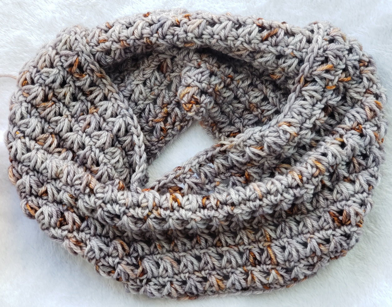 This pattern is a quick and easy make! It works up in no time and looks fabulous! You can use any Worsted Weight yarn in any combination of colours to make this cowl your own! The triangle stitches give it enormous squish!