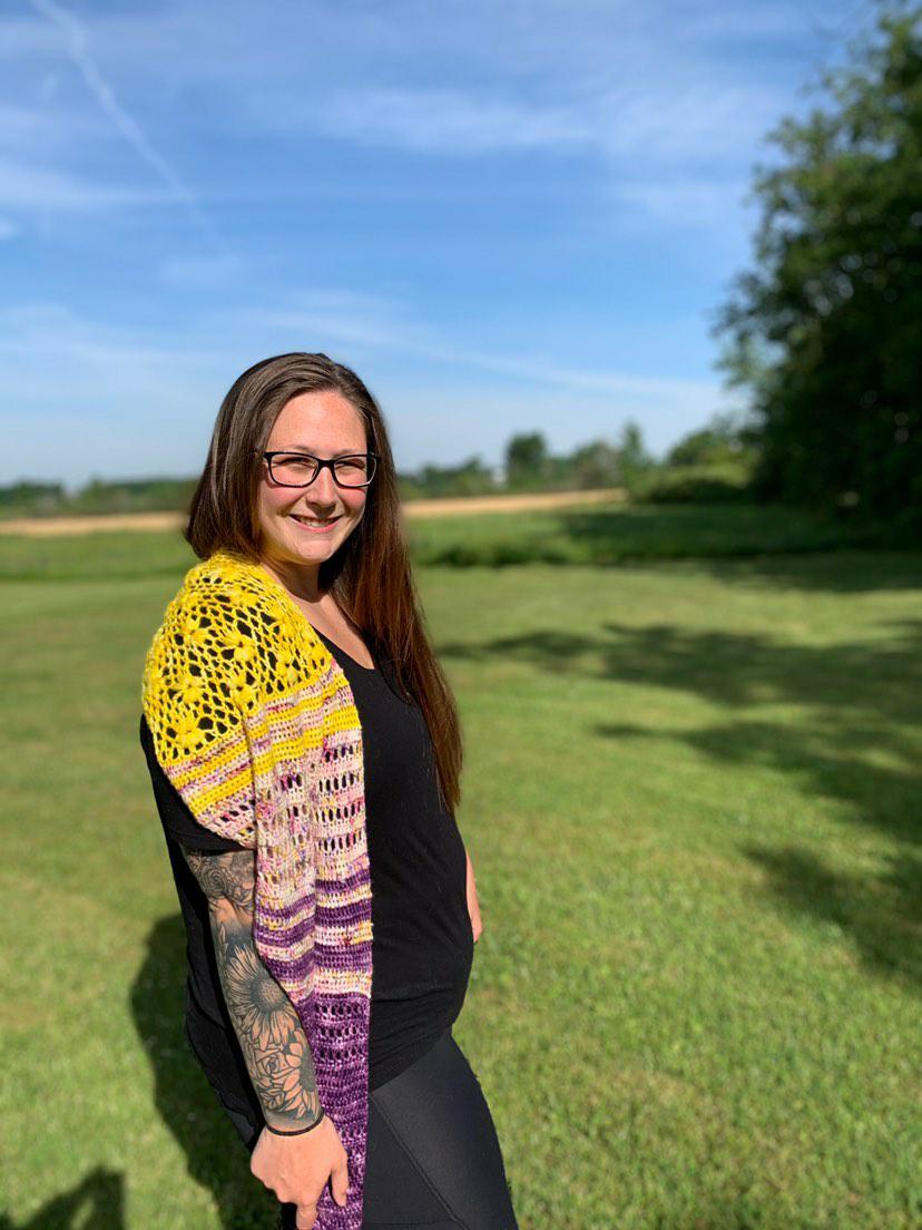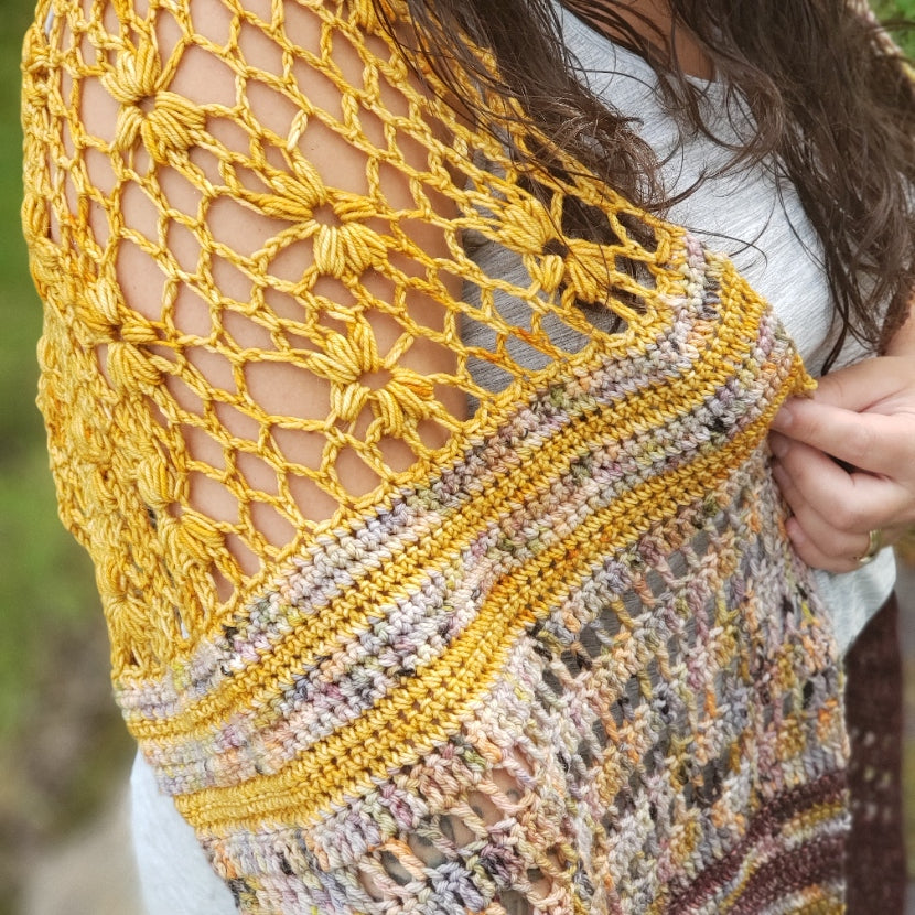 The gorgeous combination of simple stitches and colour changes create a visual masterpiece. The lace section itself draws the most focus, and for good reason. It is, in a word, STUNNING. This piece is very unique!